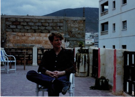 Another character at the Hotel Suerte Loca was an gay englishman of indeterminate age . Everyday he’d sit out on the balcony at 5pm to listen to the BBC worldwide service.  We’d often join him with a bottle of the local sulfite heavy headache inducing wine.  He had been in Morocco for some time.  He had been a composer of some kind.  This strangely mimicked the writer Paul Bowles history.  He makes appearances in both Dr Bernice and Sidi Ifni.
