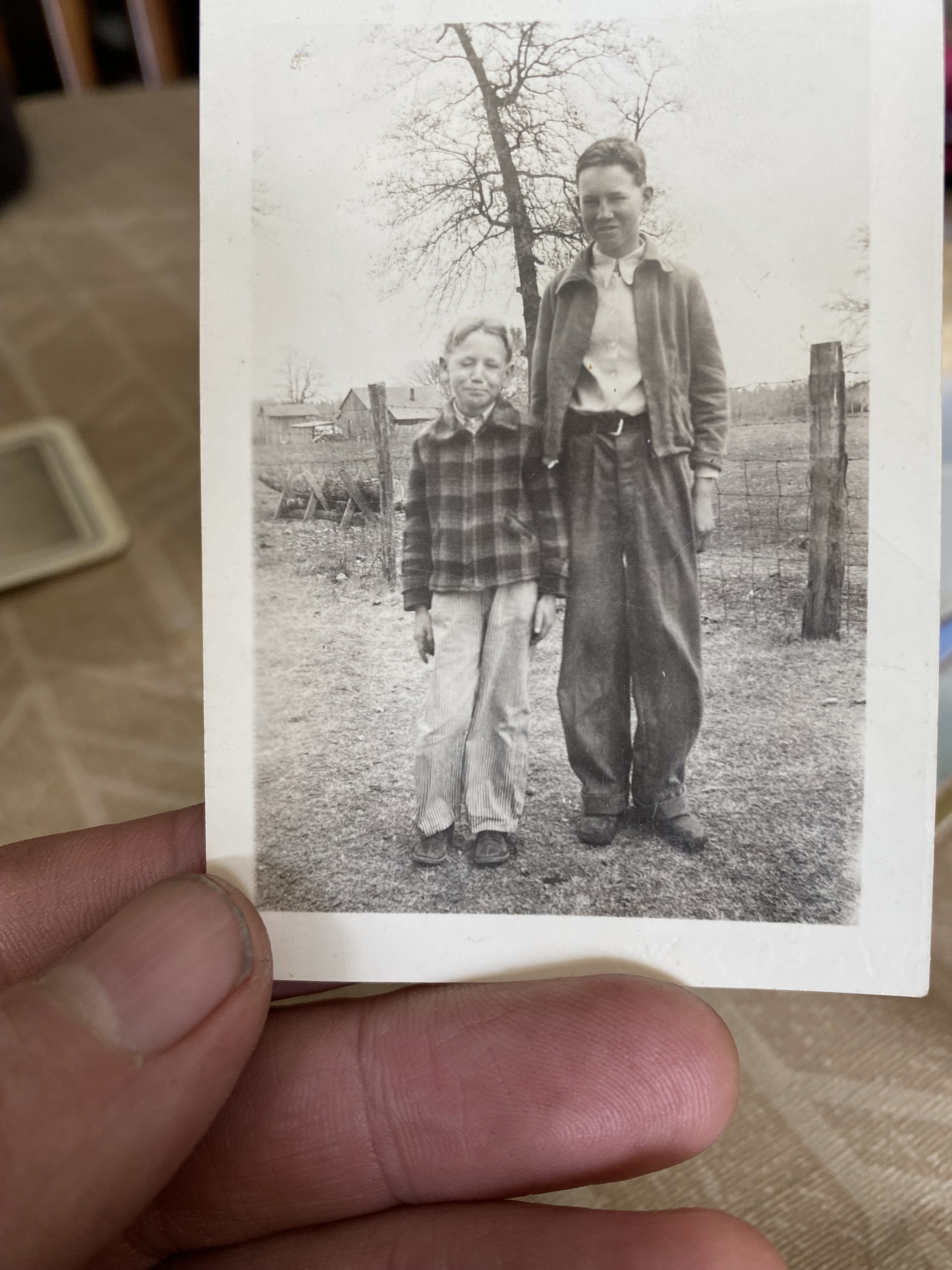The spark for the song came to me after watching a shared video of a boy’s birthday party on social media. When the first piece of cake is sliced, the boy gives it to his little brother as an act of kindness. The little brother, about five years old, bursts into tears because he adores his older brother and is overwhelmed by the kindness and respect shown to him. This made me think of my father, who surely loved his older brother in the same way. When his brother was murdered, it devastated him (see #99 Piney Woods). Although he never really talked to me about his brother’s murder until the last years of his life, I know it was something he carried with him his entire life. It made him forever a little sad, a little sweet, and always on alert or fearful that something terrible could happen.